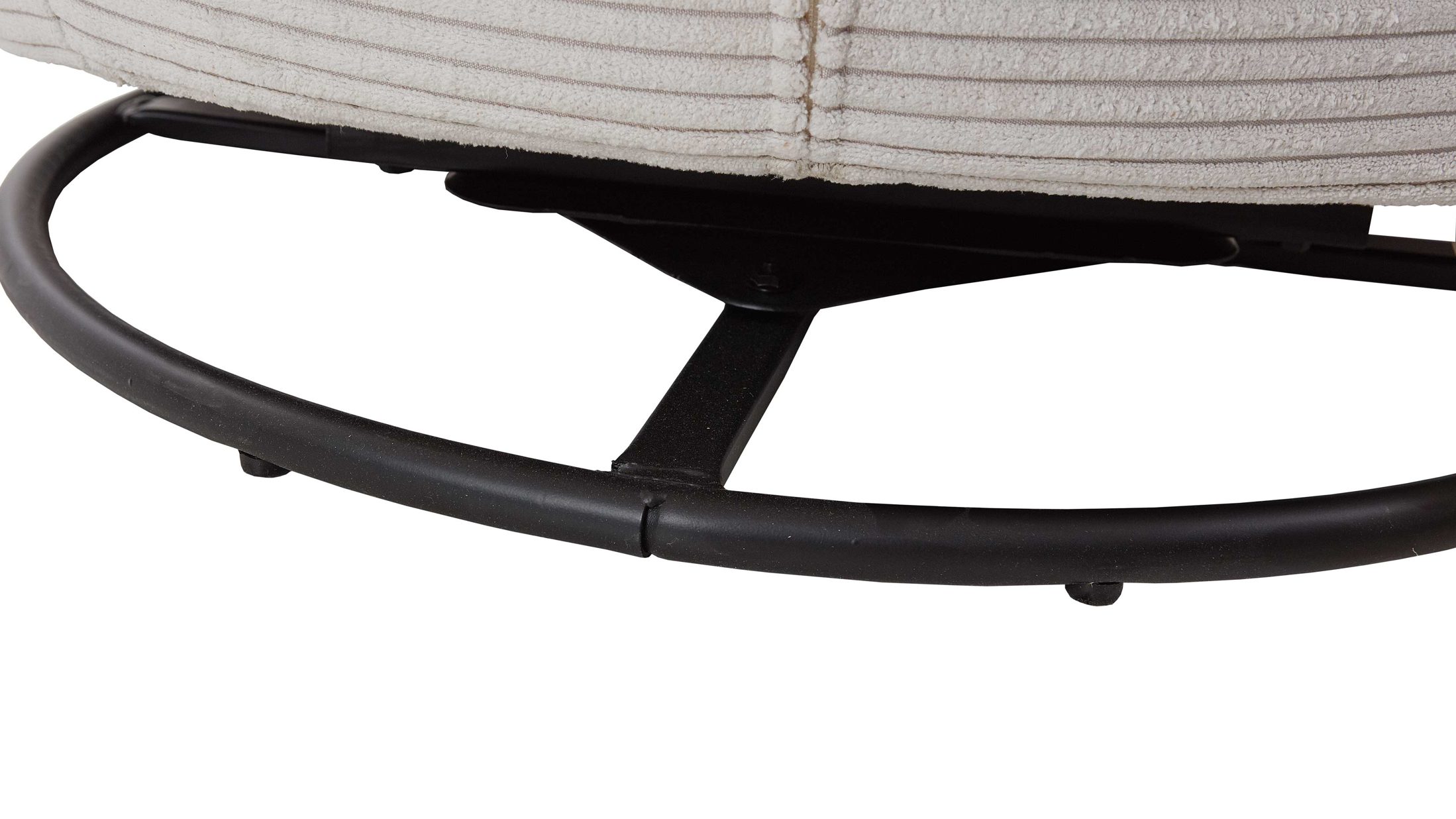 Mit seinem Signal-orangen Strukturbezug und dem schwarzen Metalldrehring wird dieser Sessel zum Blickfang in jedem Raum.