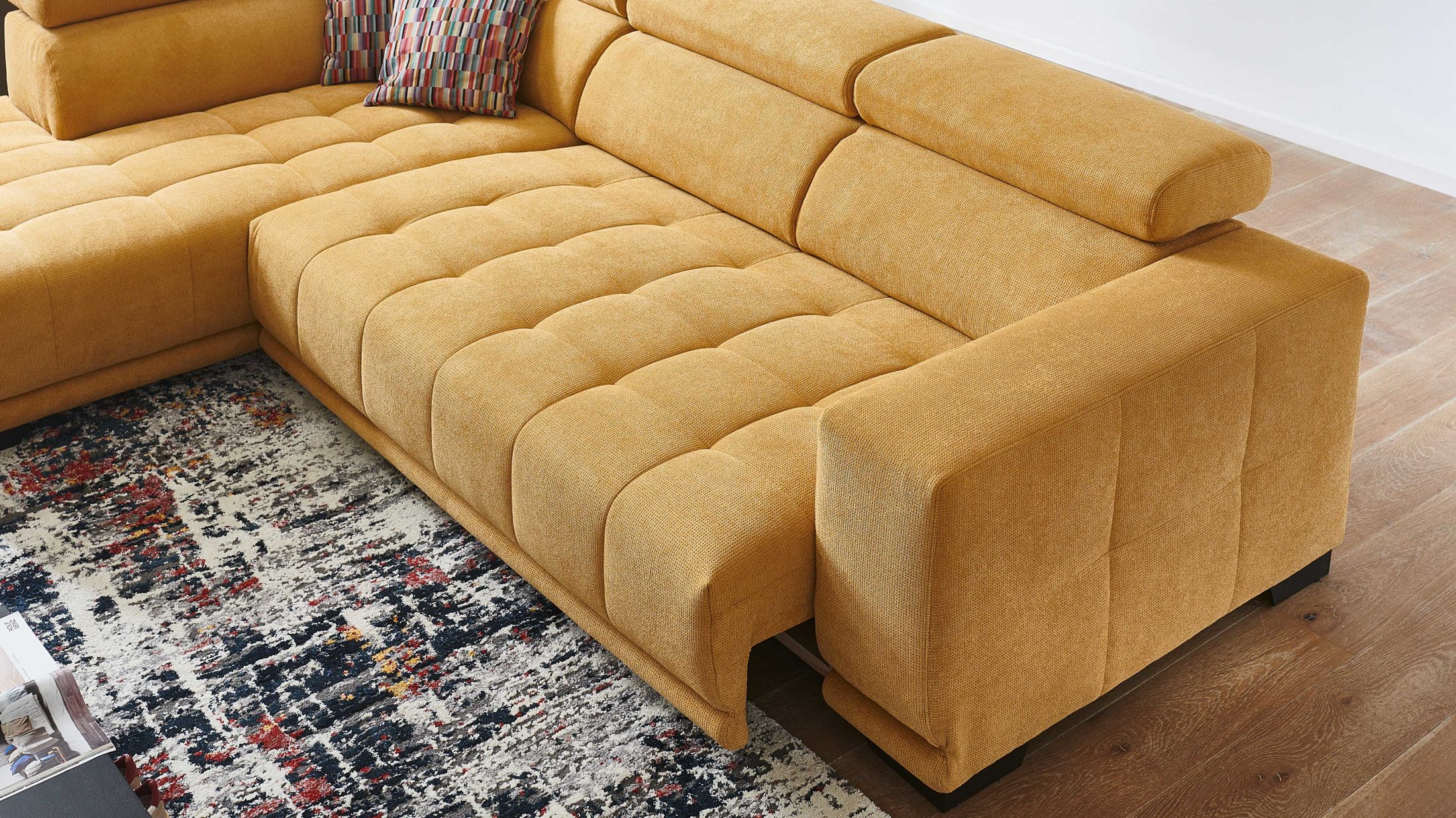 Ein besonderes Highlight der Serie ist die inklusive Kopfteilverstellung, die Ihnen zusätzlichen Komfort bietet. Sie haben außerdem die Möglichkeit, manuelle und motorische Funktionen hinzuzufügen, um die Sofaecke noch bequemer zu machen. Alternativ können Sie die Couch auch mit Holzfüßen erhalten.