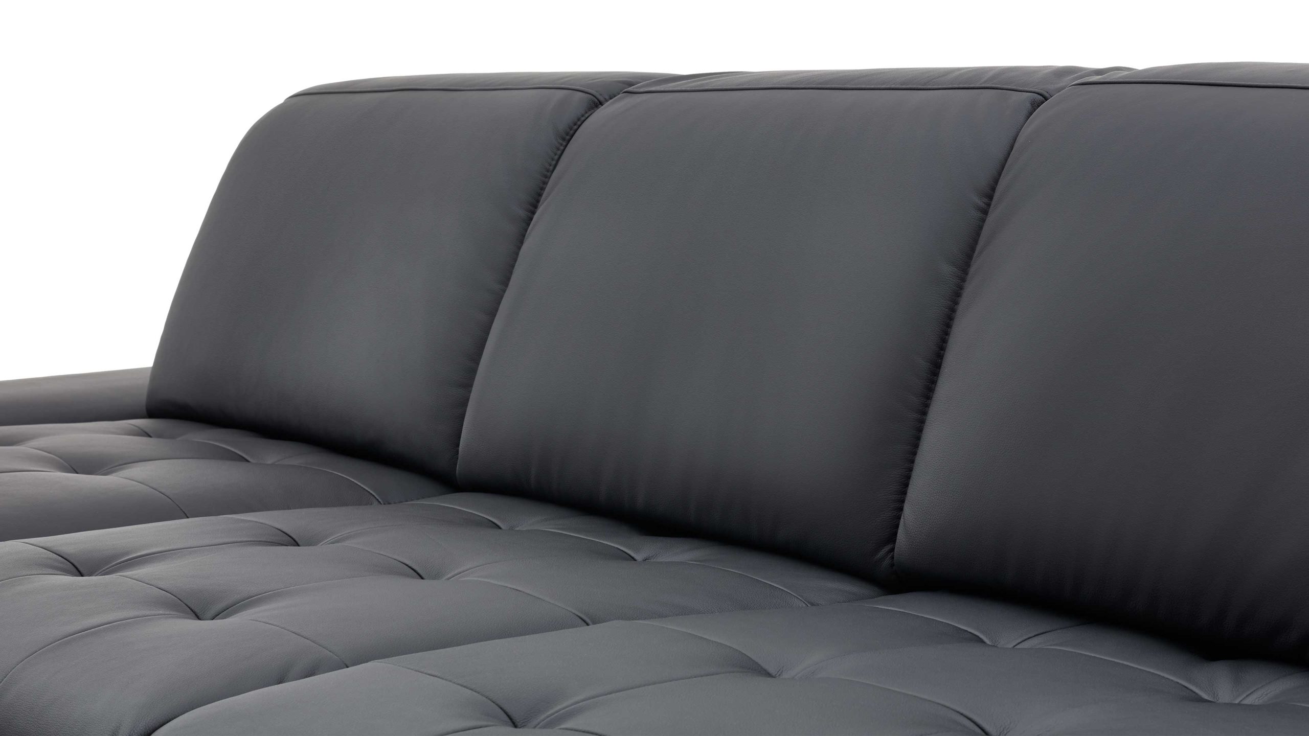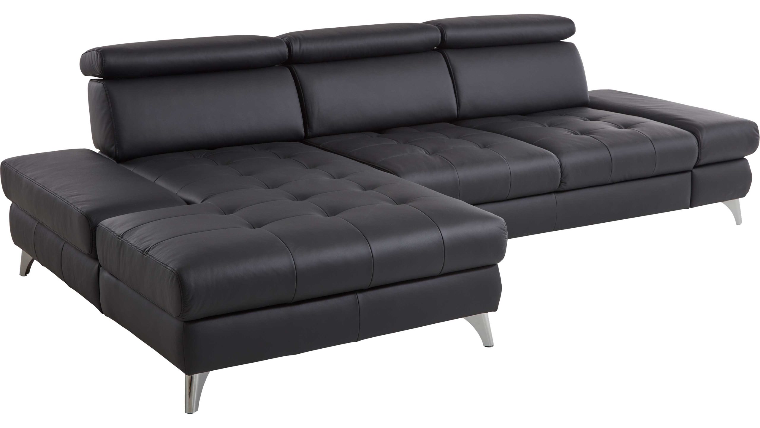 Gestalten Sie mit der KAWOO Eckkombination Torino mit schwarzem Lederbezug, gesteppter Sitzfläche und stilvoll verchromten Metallfüßen Ihr Wohnzimmer.