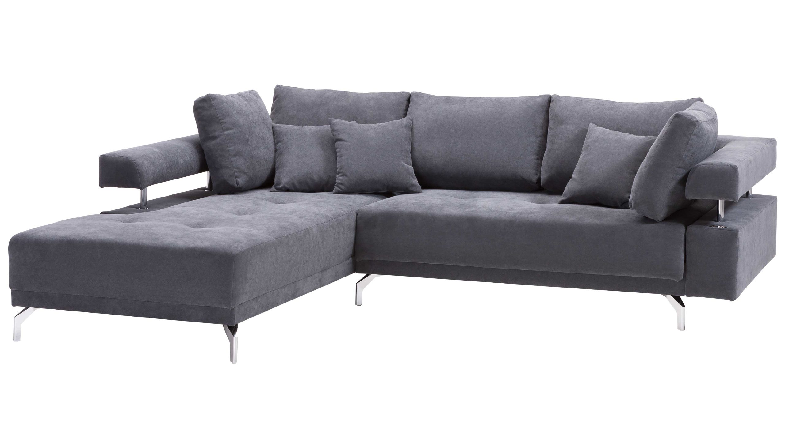 Klassisch und zeitlos passt die geschmackvolle Polstergarnitur mit dem grauen Bezug und den formschönen Metallfüßen optimal in jedes Wohnzimmer. Aber auch in Sachen Komfort hat diese Lounge-Eckcouch einiges zu bieten. Denn die Federung ist aus Bonnellfederkern auf Nosagunterfederung. Zudem sind alle Rücken des Polstermöbels stoffbezogen. Auch die motorische Sitztiefenverstellung (ca. 30 cm) der Polsterecke und die losen Kissen sind inklusive.