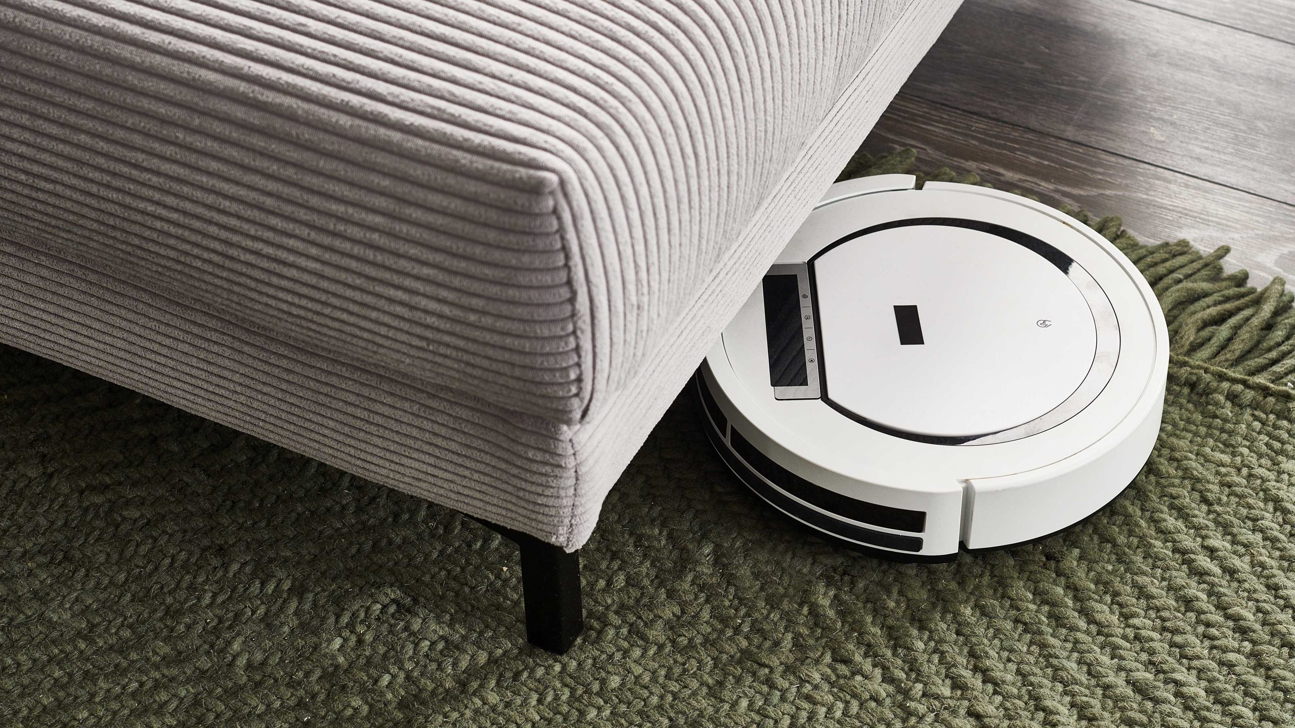 platingrauer Breitcordbezug, kombiniert mit mattschwarz pulverbeschichteten Metallfüßen